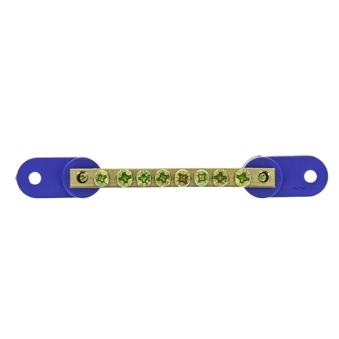 Шина "0" N (6х9мм) 8 отверстий латунь 2 синих угловых изолятора EKF PROxima