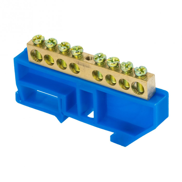 Шина "0" N (6х9мм) 8 отверстий латунь синий изолятор на DIN-рейку розничный стикер EKF PROxima