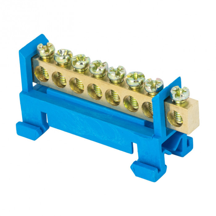 Шина "0" N (6х9мм) 8 отверстий латунь синий изолятор тип "Стойка" на DIN-рейку EKF PROxima