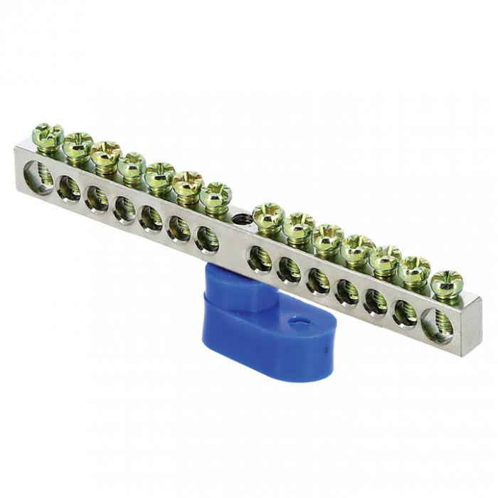 Шина "0" N (6x9мм) 14 отв. цинк синий угловой изолятор EKF PROxima