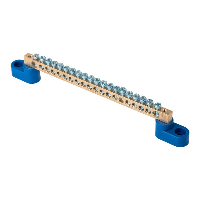 Шина "0" N (6x9мм) 20 отв. латунь 2 синих угловых изолятора розн. стикер EKF