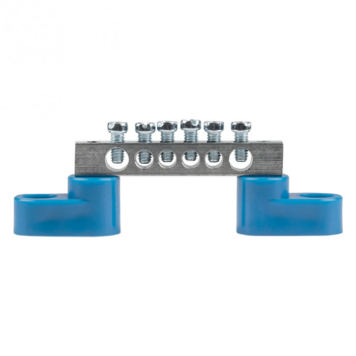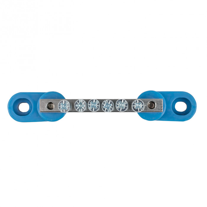 Шина "0" N (6x9мм) 6 отв. цинк 2 синих угловых изолятора EKF