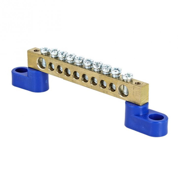 Шина "0" N (8х12мм) 10 отверстий латунь 2 синих угловых изолятора EKF PROxima