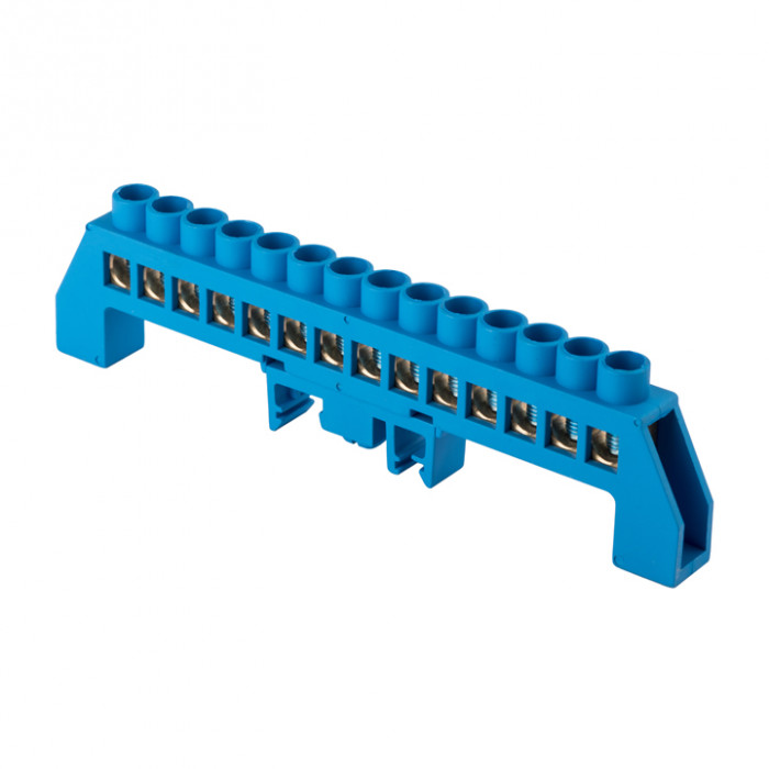 Шина "0" N (8х12мм) 14 отверстий латунь синий нейлоновый корпус комбинированный EKF PROxima