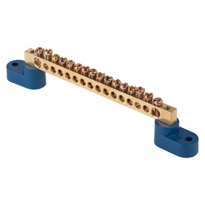 Шина "0" N (8х12мм) 16 отверстий латунь 2 синих угловых изолятора EKF PROxima
