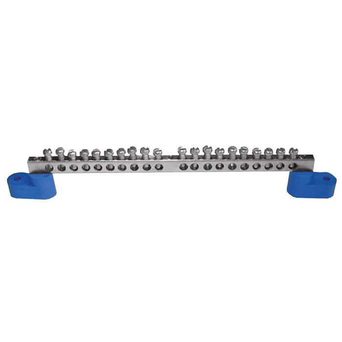 Шина "0" N (8х12мм) 20 отверстий латунь 2 синих угловых изолятора EKF PROxima