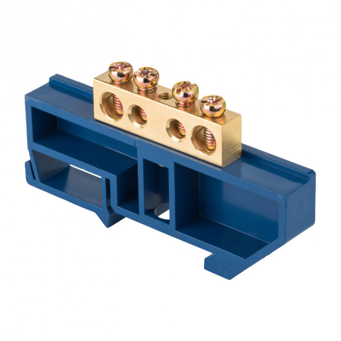 Шина "0" N (8х12мм) 4 отверстия латунь синий изолятор на DIN-рейку EKF PROxima