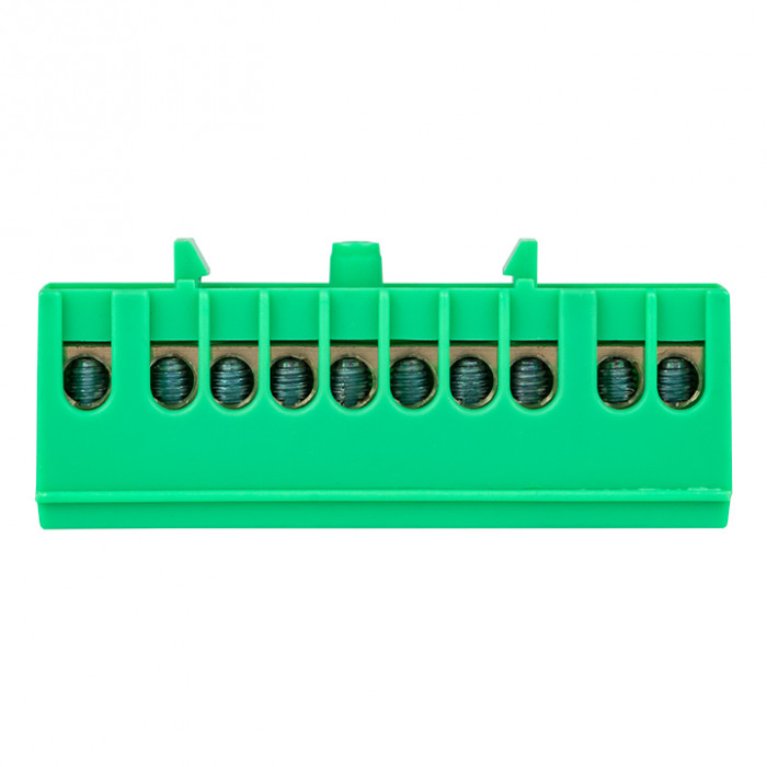 Шина "0" PE (6х9мм) 10 отверстий латунь зеленый изолированный корпус на DIN-рейку EKF PROxima
