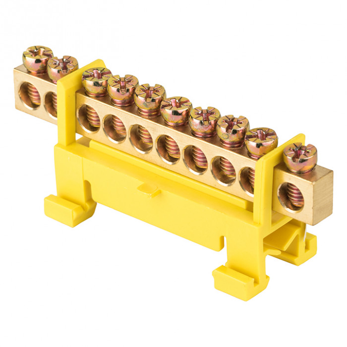 Шина "0" PE (6х9мм) 10 отверстий латунь желтый изолятор тип "Стойка" на DIN-рейку EKF PROxima
