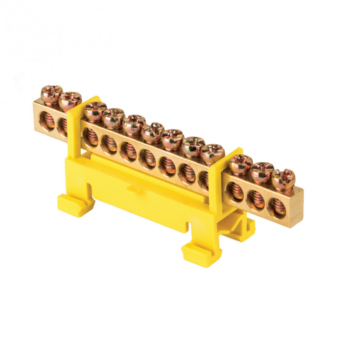 Шина "0" PE (6х9мм) 12 отверстий латунь желтый изолятор тип "Стойка" на DIN-рейку EKF PROxima