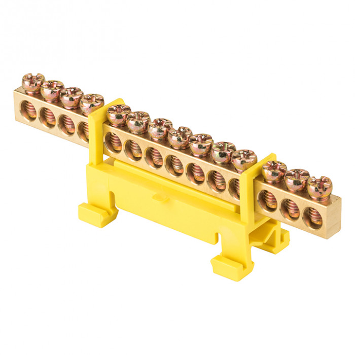 Шина "0" PE (6х9мм) 14 отверстий латунь желтый изолятор тип "Стойка" на DIN-рейку EKF PROxima