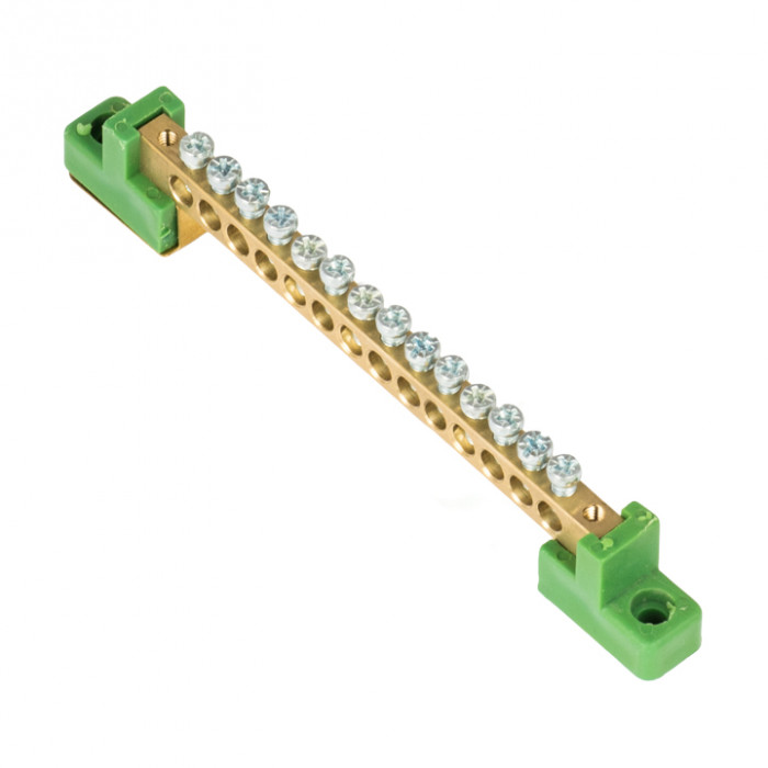 Шины предназначены для присоединения нулевых проводников (шина N) и заземления (шина PE). Шины выполнены из латуни и никелированной латуни. Нулевая шина устанавливается на изоляторе.