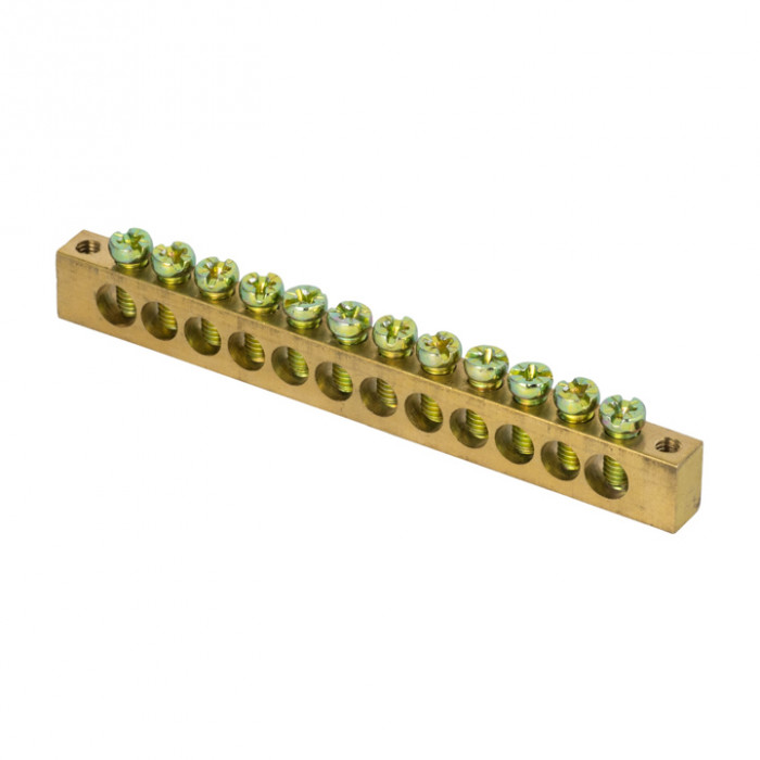 Шина PEN "ноль-земля" (6х9мм) 12 отверстий латунь крепеж по краям EKF PROxima