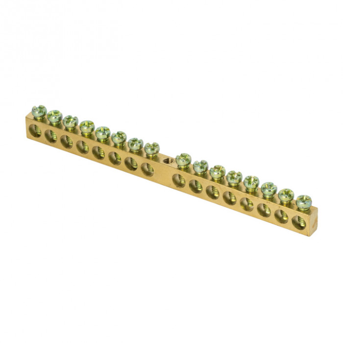Шина PEN "ноль-земля" (6х9мм) 16 отверстий латунь крепеж по центру EKF PROxima