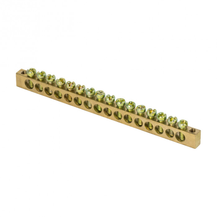 Шина PEN "ноль-земля" (6х9мм) 16 отверстий латунь крепеж по краям EKF PROxima