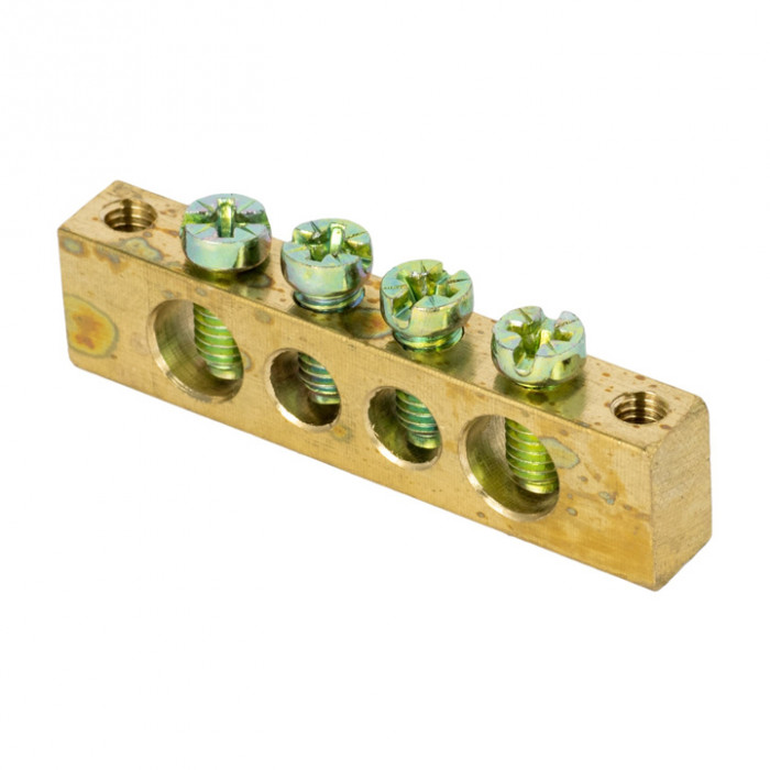 Шина PEN "ноль-земля" (6х9мм) 4 отверстия латунь крепеж по краям EKF PROxima