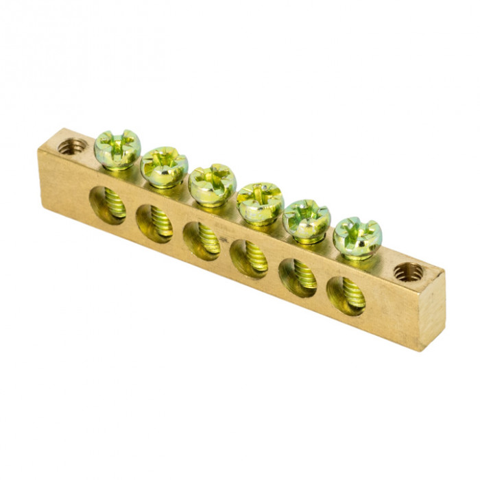 Шина PEN "ноль-земля" (6х9мм) 6 отверстий латунь крепеж по краям EKF PROxima