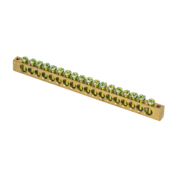 Шина PEN "ноль-земля" (8х12мм) 18 отверстий латунь крепеж по краям EKF PROxima