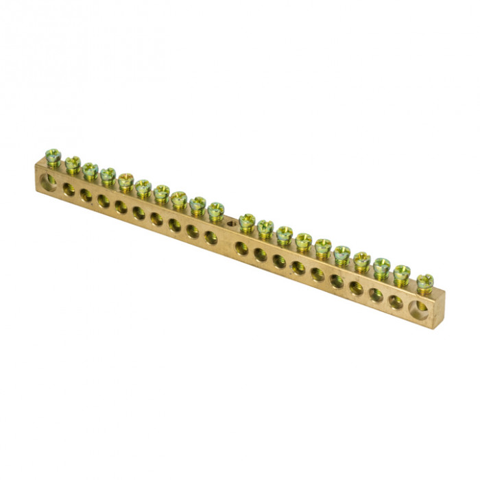 Шина PEN "ноль-земля" (8х12мм) 20 отверстий латунь крепеж по центру EKF PROxima