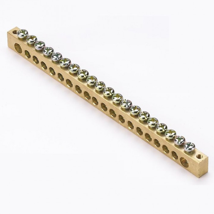 Шины предназначены для присоединения нулевых проводников (шина N) и заземления (шина PE). Шины выполнены из латуни и никелированной латуни. Нулевая шина устанавливается на изоляторе.