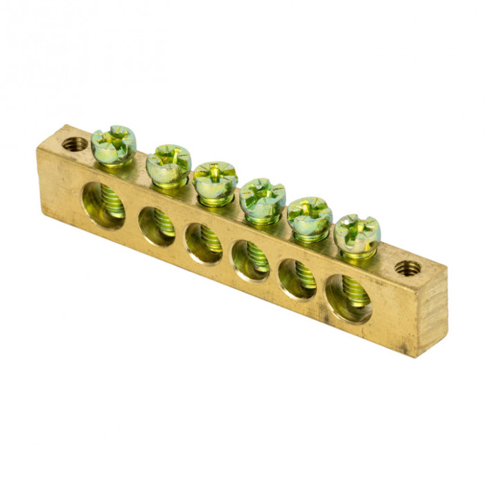 Шина PEN "ноль-земля" (8х12мм) 6 отверстий латунь крепеж по краям EKF PROxima