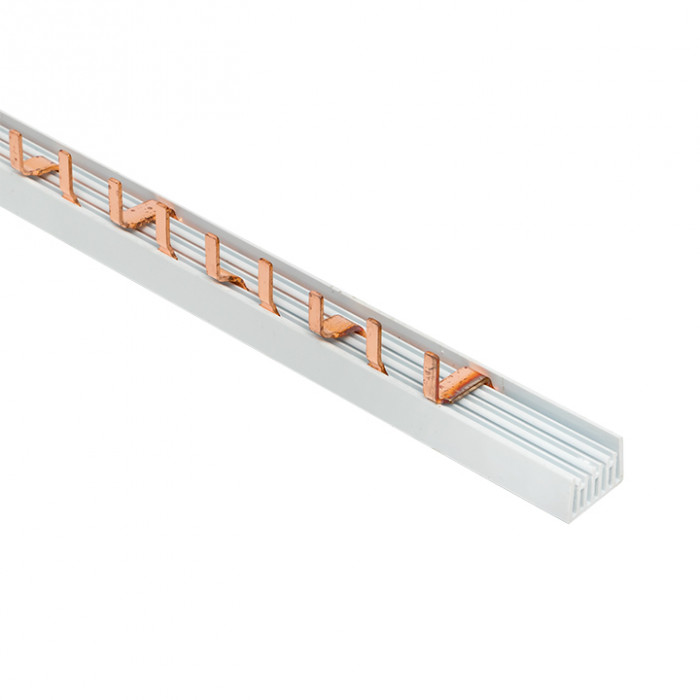 Шины соединительные представляют собой пластины, выполненные из меди (шины на 100 А – из луженой меди), закрепленные в корпусе из диэлектрического материала, не поддерживающего горение, и выпускаются стандартной длиной 1 метр. Шины соединительные делятся на два типа - FORK («вилка») и PIN («гребенка») на номинальные токи 63 и 100 А. Могут быть выполнены в одно- двух- трех- и четырехполюсном исполнений.