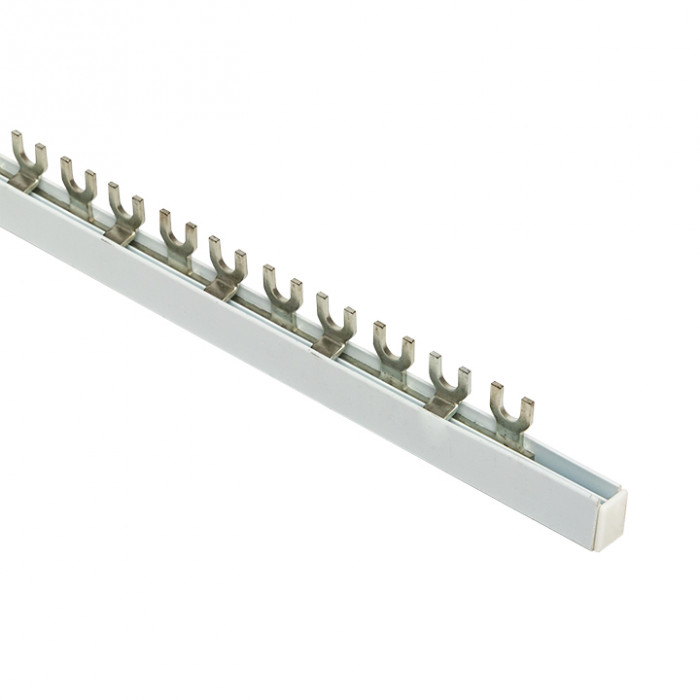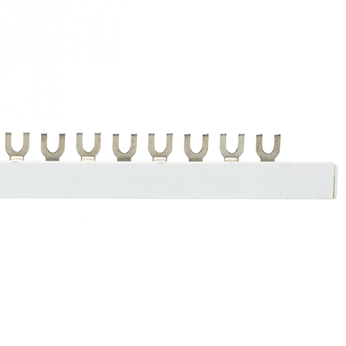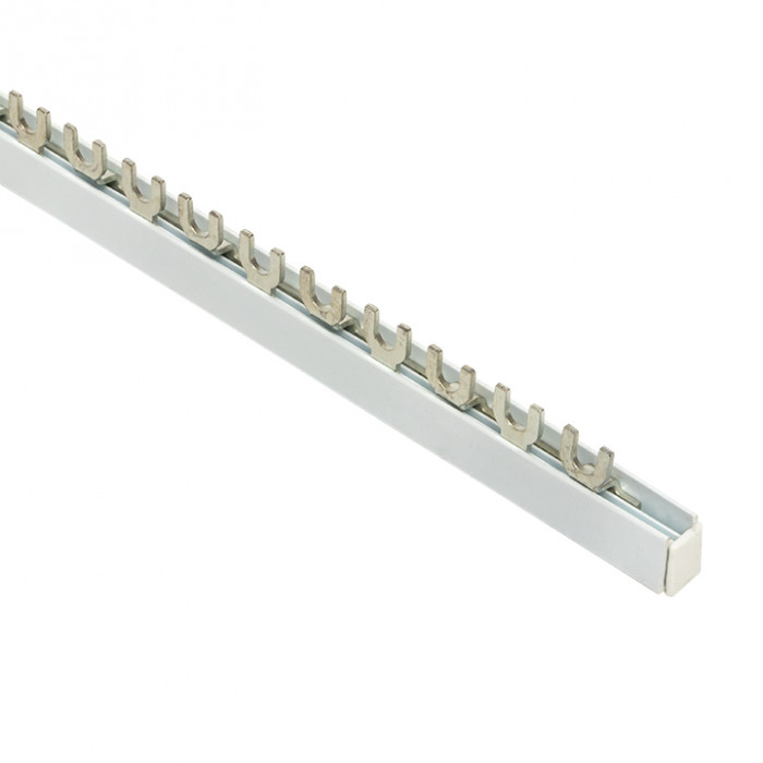 Шины соединительные представляют собой пластины, выполненные из меди (шины на 100 А – из луженой меди), закрепленные в корпусе из диэлектрического материала, не поддерживающего горение, и выпускаются стандартной длиной 1 метр. Шины соединительные делятся на два типа - FORK («вилка») и PIN («гребенка») на номинальные токи 63 и 100 А. Могут быть выполнены в одно- двух- трех- и четырехполюсном исполнений.