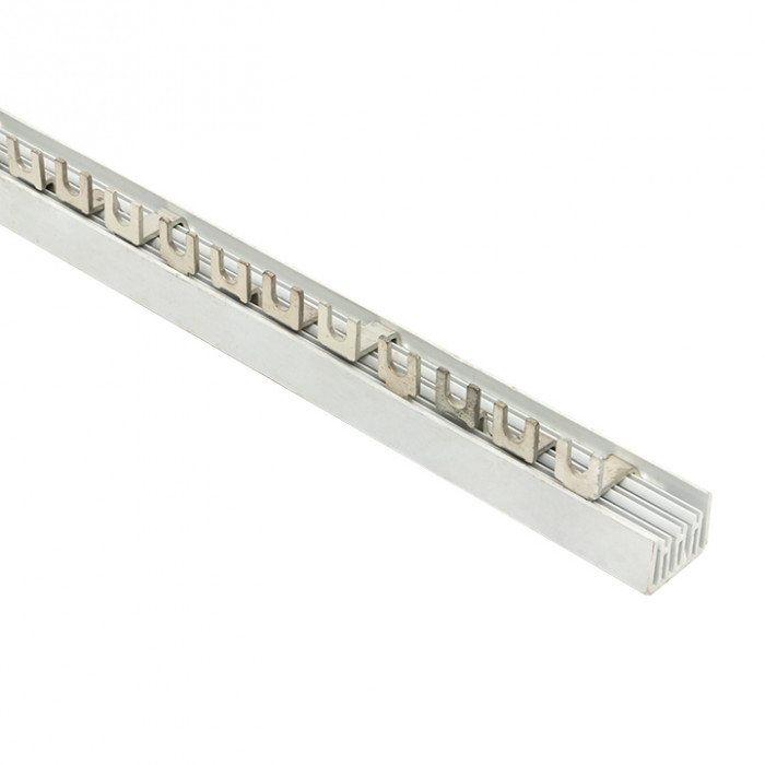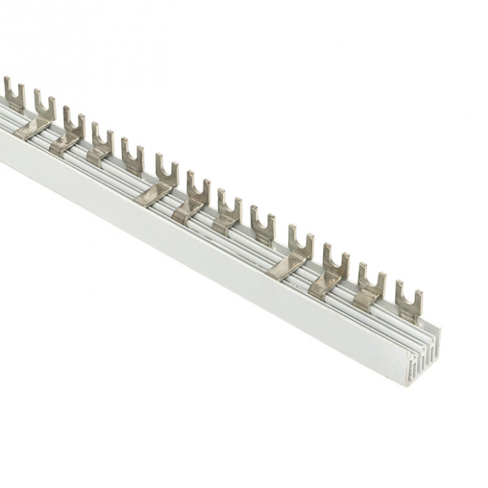 Шины соединительные представляют собой пластины, выполненные из меди (шины на 100 А – из луженой меди), закрепленные в корпусе из диэлектрического материала, не поддерживающего горение, и выпускаются стандартной длиной 1 метр. Шины соединительные делятся на два типа - FORK («вилка») и PIN («гребенка») на номинальные токи 63 и 100 А. Могут быть выполнены в одно- двух- трех- и четырехполюсном исполнений.