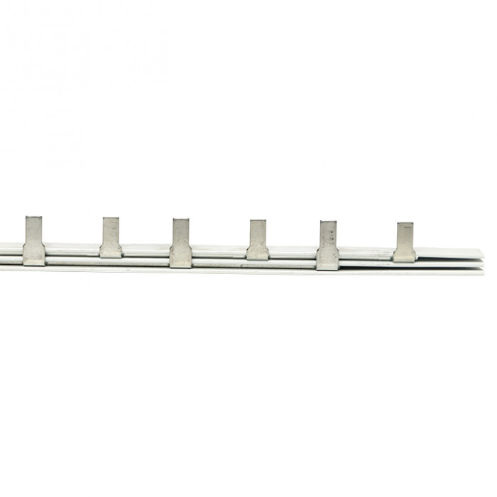Шины соединительные представляют собой пластины, выполненные из меди (шины на 100 А – из луженой меди), закрепленные в корпусе из диэлектрического материала, не поддерживающего горение, и выпускаются стандартной длиной 1 метр. Шины соединительные делятся на два типа - FORK («вилка») и PIN («гребенка») на номинальные токи 63 и 100 А. Могут быть выполнены в одно- двух- трех- и четырехполюсном исполнений.
