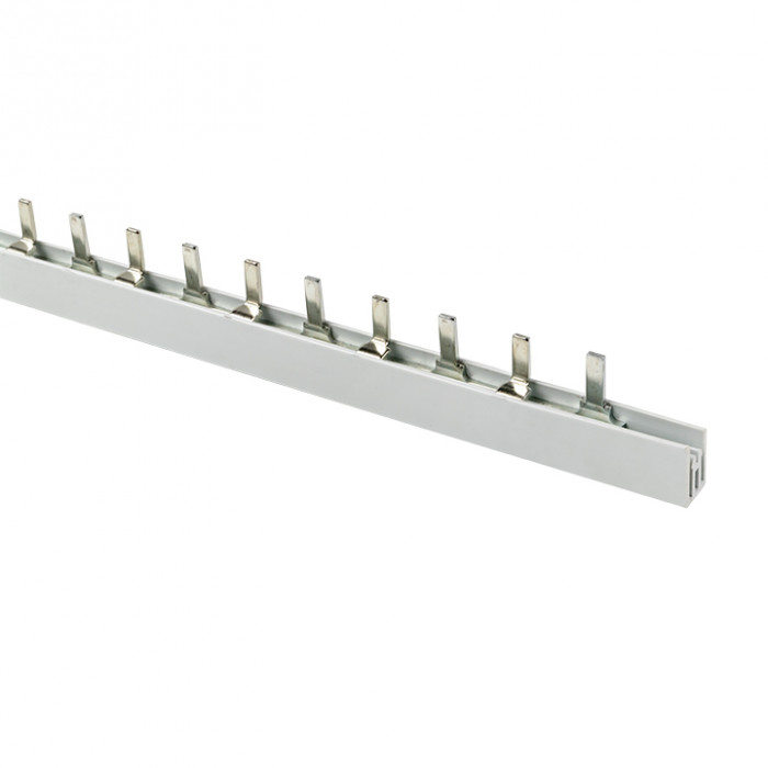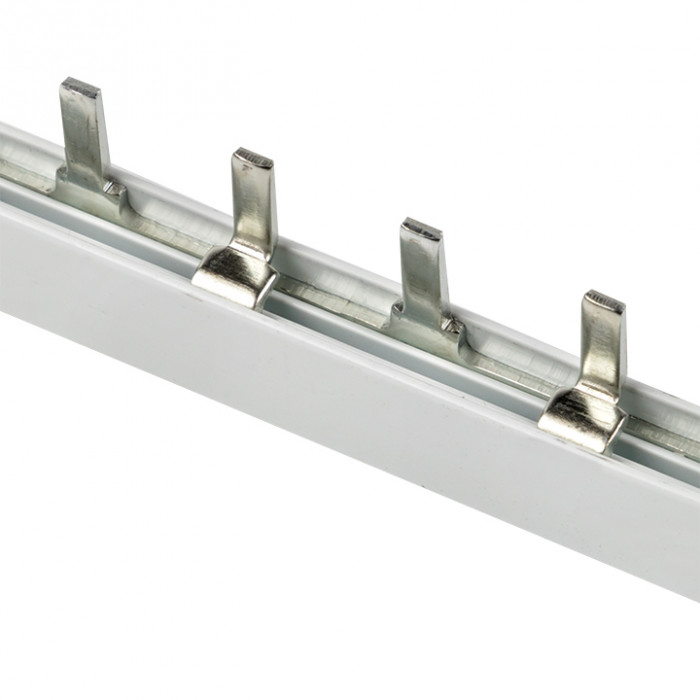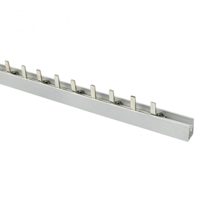 Шины соединительные представляют собой пластины, выполненные из меди (шины на 100 А – из луженой меди), закрепленные в корпусе из диэлектрического материала, не поддерживающего горение, и выпускаются стандартной длиной 1 метр. Шины соединительные делятся на два типа - FORK («вилка») и PIN («гребенка») на номинальные токи 63 и 100 А. Могут быть выполнены в одно- двух- трех- и четырехполюсном исполнений.
