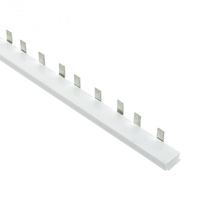 Шины соединительные представляют собой пластины, выполненные из меди (шины на 100 А – из луженой меди), закрепленные в корпусе из диэлектрического материала, не поддерживающего горение, и выпускаются стандартной длиной 1 метр. Шины соединительные делятся на два типа - FORK («вилка») и PIN («гребенка») на номинальные токи 63 и 100 А. Могут быть выполнены в одно- двух- трех- и четырехполюсном исполнений.