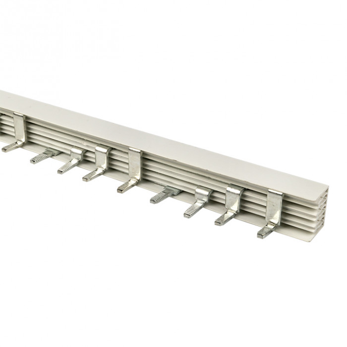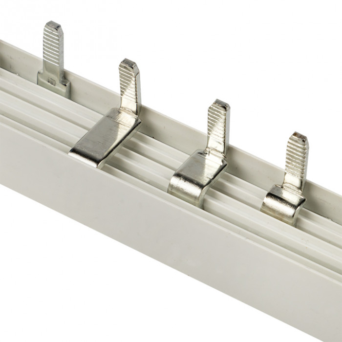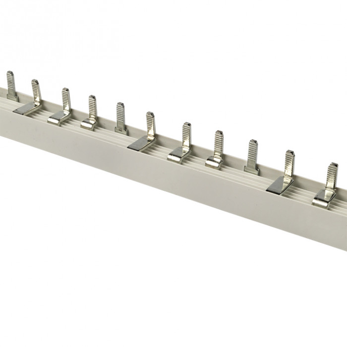Шины соединительные представляют собой пластины, выполненные из меди (шины на 100 А – из луженой меди), закрепленные в корпусе из диэлектрического материала, не поддерживающего горение, и выпускаются стандартной длиной 1 метр. Шины соединительные делятся на два типа - FORK («вилка») и PIN («гребенка») на номинальные токи 63 и 100 А. Могут быть выполнены в одно- двух- трех- и четырехполюсном исполнений.