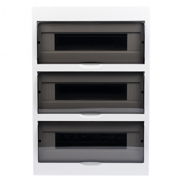 Щиты распределительные пластиковые ЩРн-П, ЩРв-П EKF PROxima предназначены для установки модульной аппаратуры: автоматических выключателей, УЗО, таймеров, устройств управления и т.д. Используются для электромонтажа в жилых, административных, торговых помещениях. Вертикальное открывание дверцы позволяет устанавливать бокс независимо от положения соседних стен. Электрощиты изготовлены из прочного ABS-пластика.