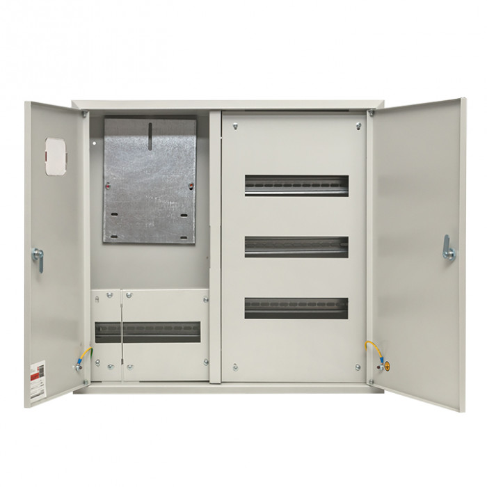 Электрощиты оснащены съемной фальш-панелью, монтажной панелью и DIN-рейкой. Электрощиты защищены от коррозии и разрушающего воздействия погодных факторов благодаря фосфатированию и использованию атмосферостойкой порошковой краски.