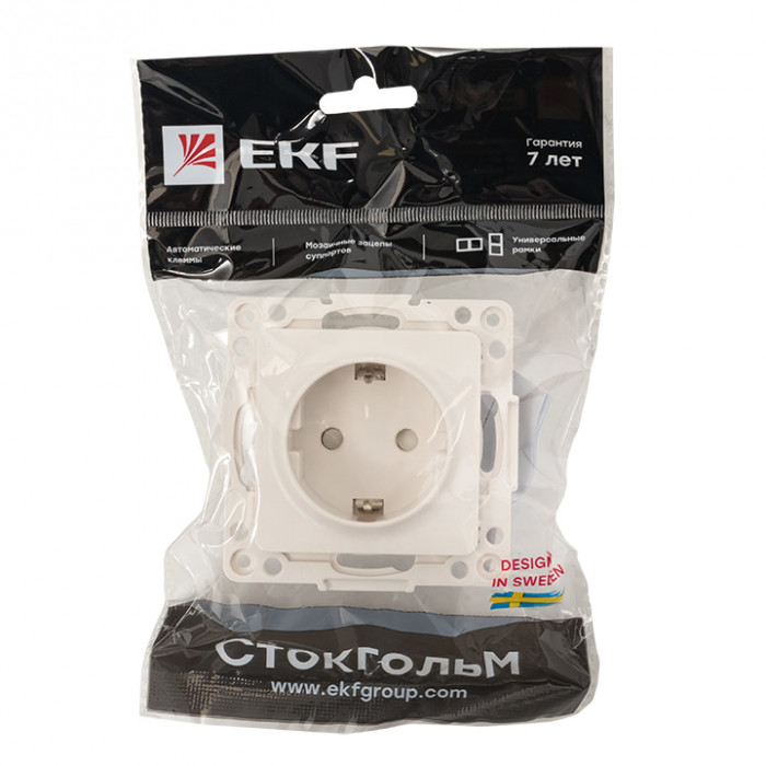 Стокгольм Механизм Розетки 1-местной с/з 16А белый с защ. штор. EKF PROxima