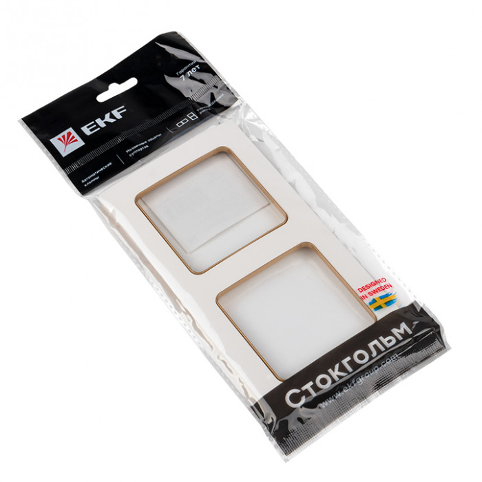 Стокгольм Рамка 2-местная белая с линией цвета шампань EKF PROxima