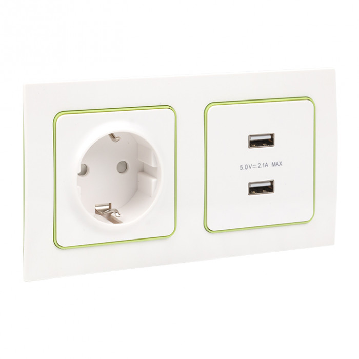 Стокгольм Рамка 2-местная белая с линией цвета зеленый EKF PROxima