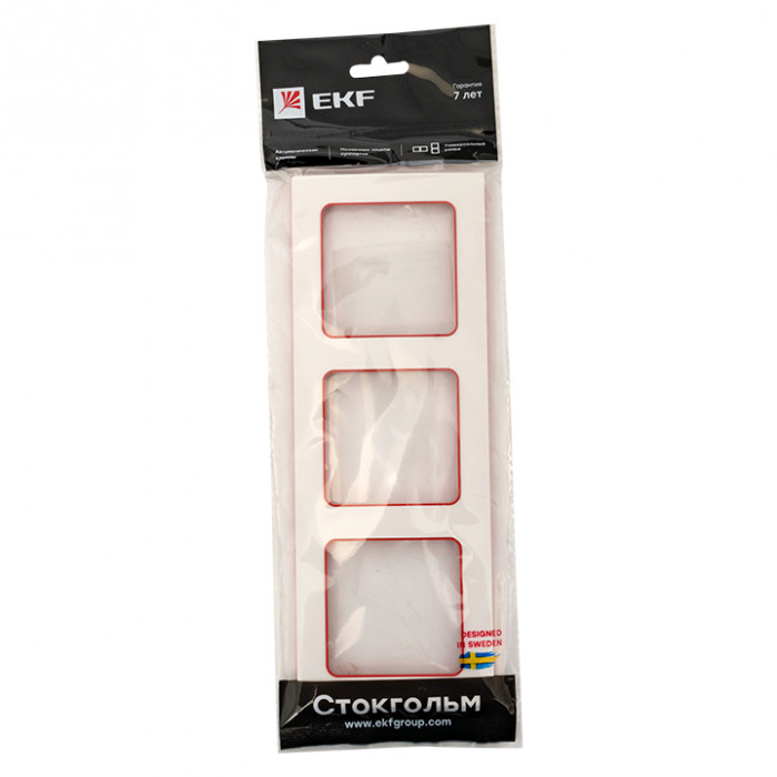 Стокгольм Рамка 3-местная белая с линией цвета красный EKF PROxima