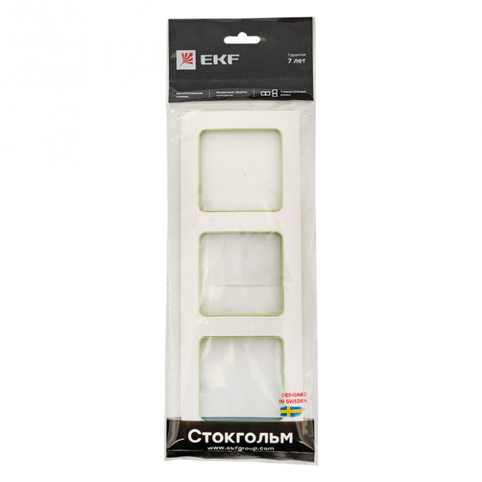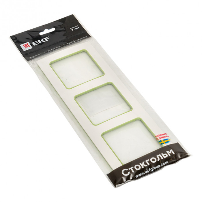 Стокгольм Рамка 3-местная белая с линией цвета зеленый EKF PROxima