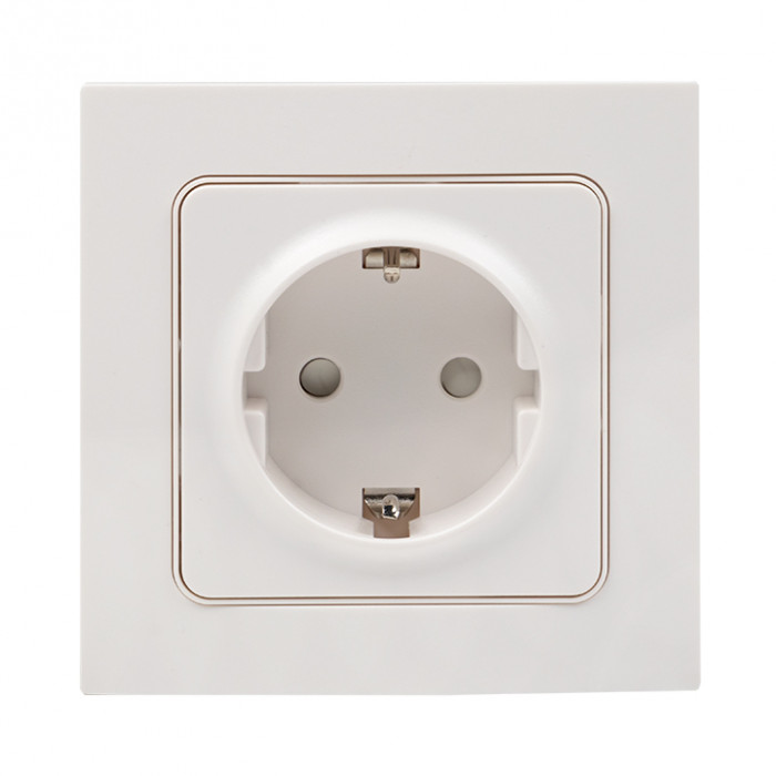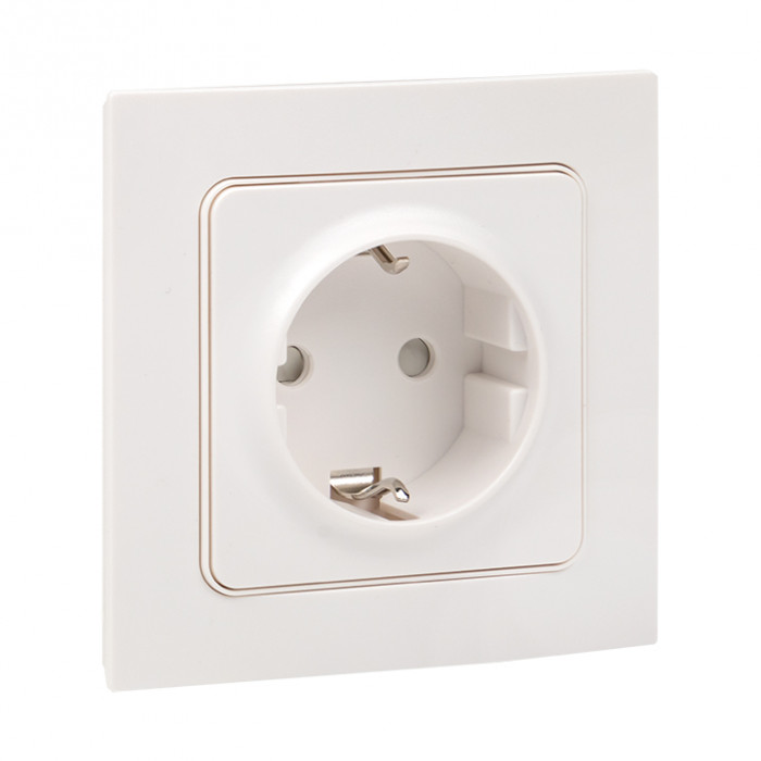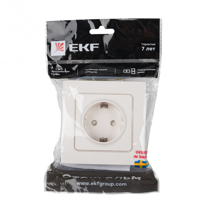 Стокгольм Розетка 1-местная с/з 16А белая с защ. штор. EKF PROxima