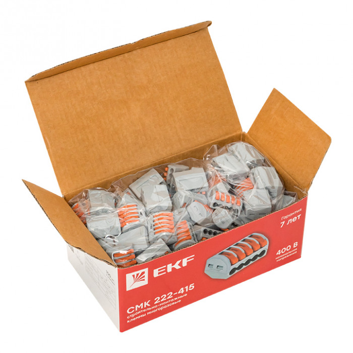 Клеммы СМК предназначены для многоразового присоединения и ответвления одножильных и многожильных проводников из меди (серия 222) или меди и алюминия (серия 224) в электрических цепях переменного тока с частотой 50 Гц напряжением до 400 В.