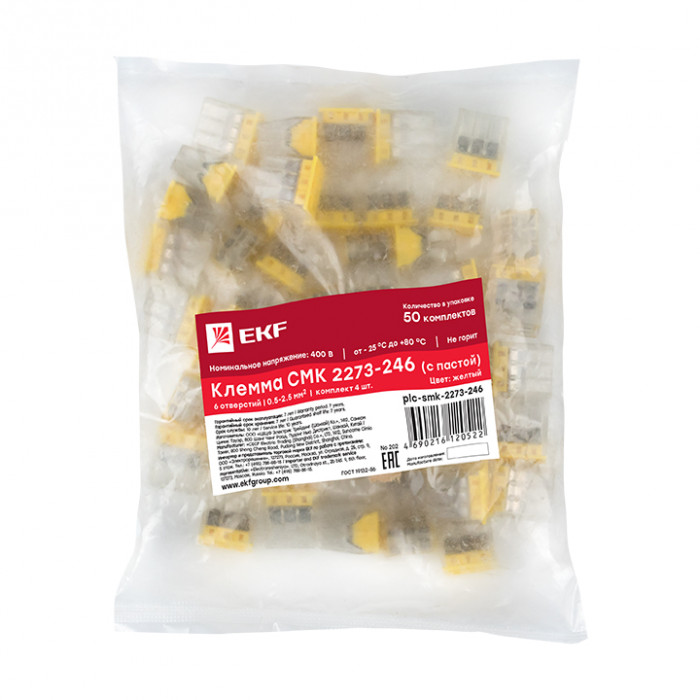 Клеммы СМК компактные серии 2273 применяются в распределительных коробках и предназначены для присоединения и ответвления одножильных проводников из меди и алюминия или многожильного медного провода с наконечником в электрических цепях переменного тока с частотой 50 Гц напряжением до 400 В. Клеммы СМК компактные серии 2273 с пастой предусматривают наличие специальной контактной пасты, которая автоматически снимает окисную пленку с алюминиевых проводов и предохраняет их от повторного окисления
