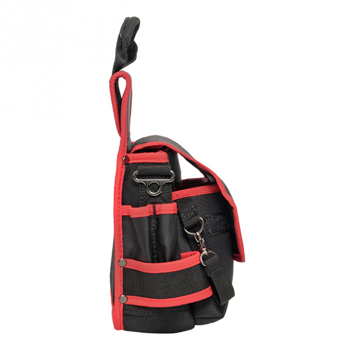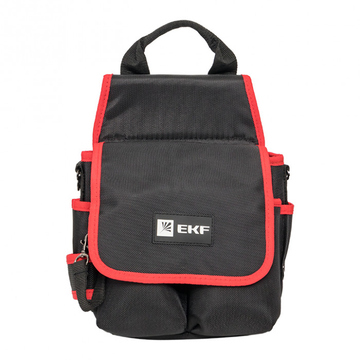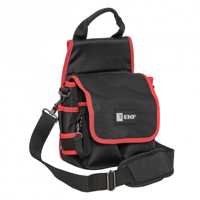 'Сумка монтажника поясная с крышкой и ремнем С-14 EKF пригодится в мастерской или на стройплощадке как самостоятельная единица, так и в составе Пояса монтажника с 3 сумками и разгрузочными ремнями С-15 (EKF) так и Сумки-пояса монтажника С-12 EKF. В соответствии с пожеланиями электриков сумка снабжена защитной крышкой. Карманы выполнены из материала EVA, отличающегося повышенной прочностью и износостойкостью. Хорошо держат форму. Особенно удобны для хранения расходных материалов. Ремень с мягким нескользящим наплечником не скатывается с плеча при переноске и может использоваться как пояс, расширяя возможности применения сумки.'