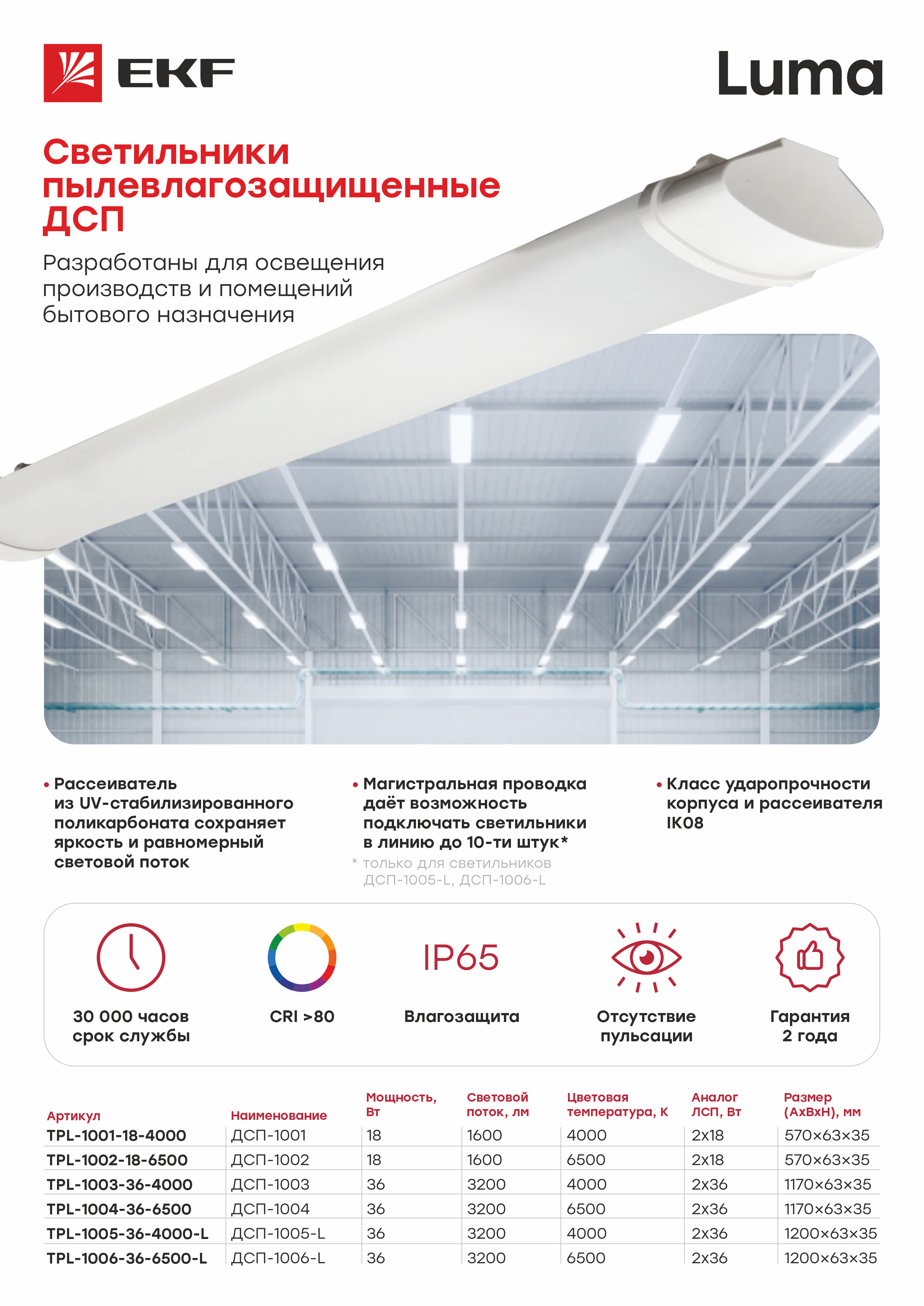 Промышленные светильники — профессиональное решение для освещения производственных и общественных помещений с высоким уровнем запыленности и влажности (автомойки, парковки, подсобные помещения).Высокая степень защиты от пыли и влаги IP65 и корпус из ударопрочного поликарбоната позволяет использовать светильники для эксплуатации в тяжелых условиях с повышенным уровнем влаги и пыли.