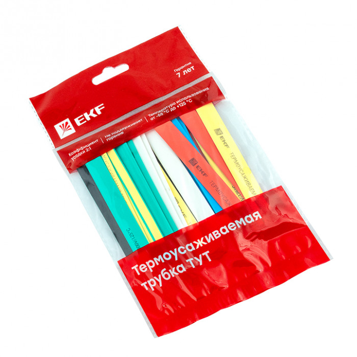 Термоусаживаемая трубка ТУТ нг 16/8 набор:7 цветов по 3шт. 100мм. EKF PROxima
