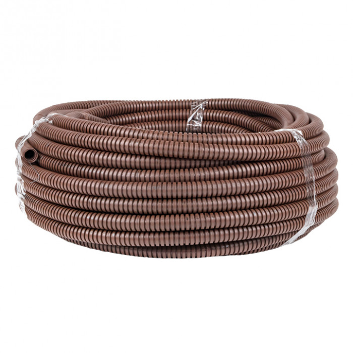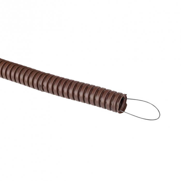 Труба гофрированная ПВХ с протяжкой d16 мм (25 м) темное дерево EKF-Plast