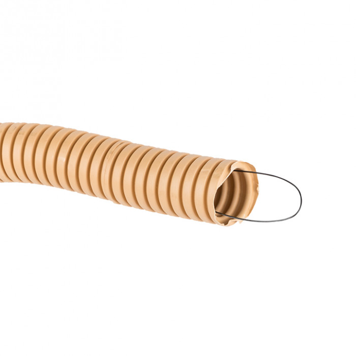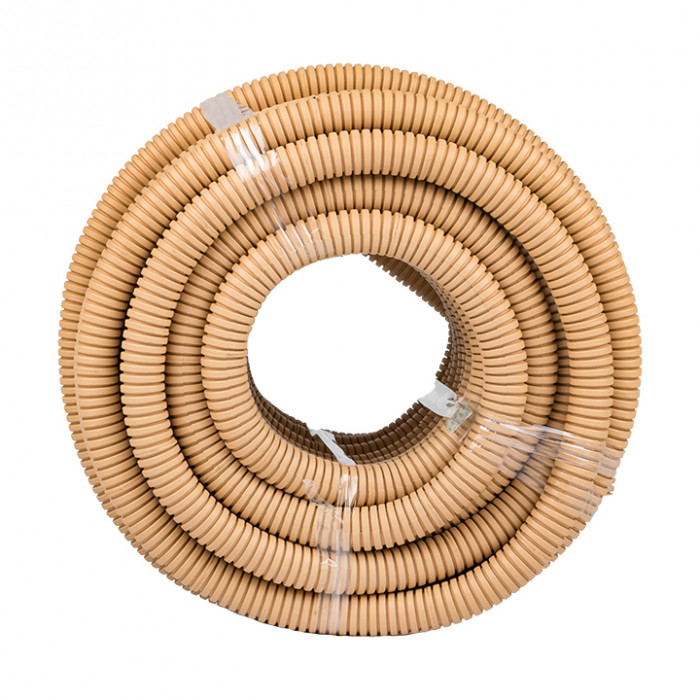 Труба гофрированная ПВХ с протяжкой d25 мм (25 м) светлое дерево EKF-Plast