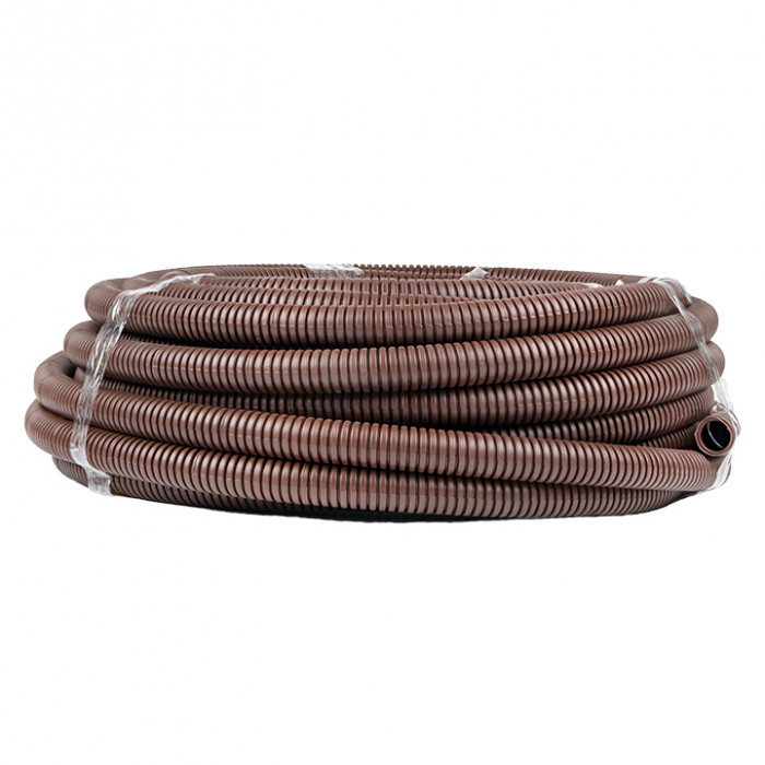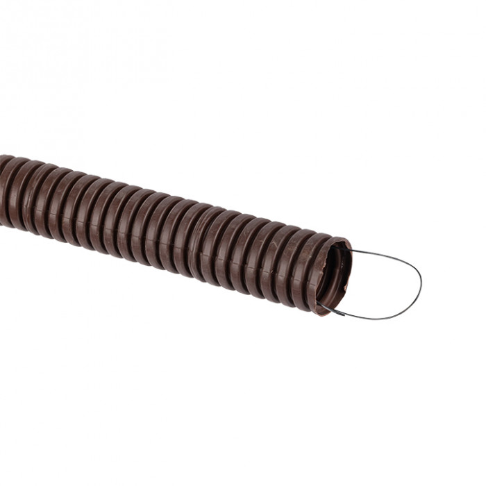 Труба гофрированная ПВХ с протяжкой d25 мм (25 м) темное дерево EKF-Plast