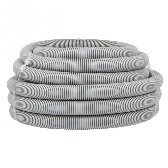 Труба гофрированная ПВХ с протяжкой d40 мм (15 м) серая EKF-Plast