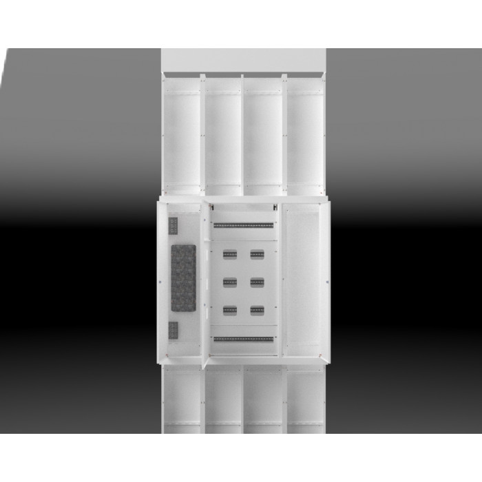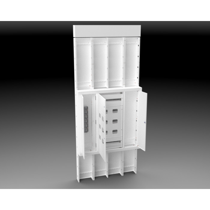 УЭРК - устройство этажное распределительное с отдельным кабельным отсеком для ослуживания до 10 квартир*. Устройство состоит из внутренних секций, которые устанавливаются в нишу и по которым проходят силовые магистральные и слаботочные линии, и внешней оболочки, в который устанавливается оборудование для приема и распределения электроэнергии в квартиры, её учёта и контроля, подключения систем связи, охраны, радио и телевидения.
